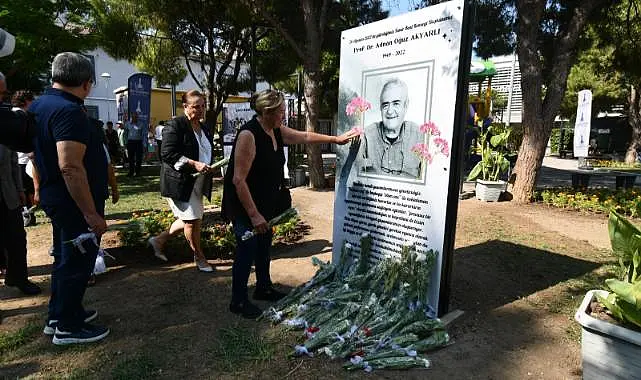 Merhum Akyarlı'nın büstünün yapılacağı park alanında Akyarlı'nın sevenleri, anı köşesine karanfil bıraktı. Fotoğraflarının yer aldığı sergiyi gezdi.