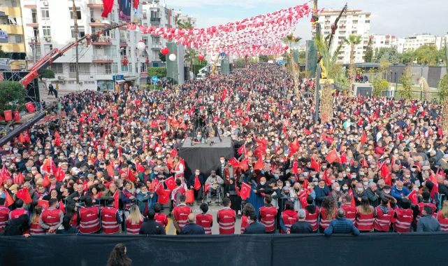 Konak Belediye Başkanı Abdül Batur: "Milletimizin sesi olmak, halkımızla kucaklaşmak için Mersin'deyiz. Genel Başkanımız Kemal Kılıçdaroğlu önderliğinde gerçekleşecek bu ilk mitingle yaktığımız meşale, partimizi iktidara taşıyacak." derken
