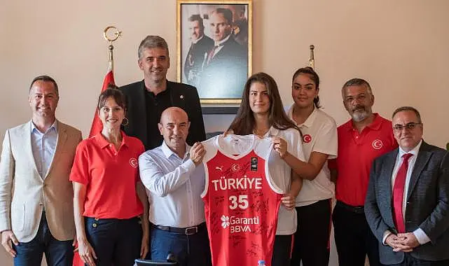 11-19 Ağustos 2023 tarihleri arasında İzmir'de düzenlenen 16 Yaş Altı Kızlar Avrupa Şampiyonası müsabakaları kapsamında 15 Ağustos Salı günü (yarın) Finlandiya ile maça çıkmaya hazırlanan milli takım oyuncuları İzmir Büyükşehir Belediye Başkanı Tunç Soyer’i ziyaret etti. Egemenlik Evi’nde yapılan toplantıya İzmir Büyükşehir Belediyesi Gençlik ve Spor Dairesi Başkanı Hakan Orhunbilge, ESHOT Genel Müdürü Erhan Bey, Türkiye Basketbol Federasyon As Başkanı Hüseyin Beşok, 16 Yaş Altı Kızlar Milli Takım Baş Antrenörü Olcay Orak, Takım Kaptanı Şeyma Yılık, Takım Menajeri Ceyda Kozluca Kabaran ve oyuncu Berfin Şahin katıldı. Takım kaptanı Şeyma Yılık, oyuncuların imzaladığı formayı günün anısına Başkan Soyer’e verdi.