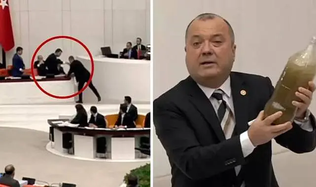 Murat Kurum aniden kalkıp masadaki kozalağı ve pis su dolu şişeyi fırlattı. Kurum'un hareketinden sonra tansiyon yükseldi. AK Partili vekiller de tartışmaya dahil olunca TBMM Başkanvekili Sırrı Süreyye Önder yaşanan gerginliğin ardından TBMM Genel Kurulu oturumuna 20 dakika ara verdi.