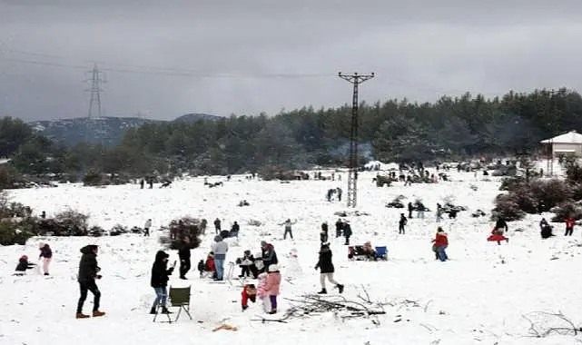 Muğla'da 2 bin rakımlı Yılanlı dağına gece boyunca yoğun kar yağışı sonrası yer yer 15-20 santime ulaşan kar yağışı sonrası vatandaşlar günlerden Pazar olması nedeniyle Yılanlı dağına akın etti. Muğla’nın Menteşe ilçesi dışından Marmaris, Ortaca, Dalaman, Köyceğiz, Ula, Yatağan ve Bodrum ilçelerinden de Yılanlı dağına karda piknik yapmak için araçları ile gelen vatandaşlar, kar üzerinde ateş yakarak hem piknik yaptı, hem de kartopu oynadılar.
