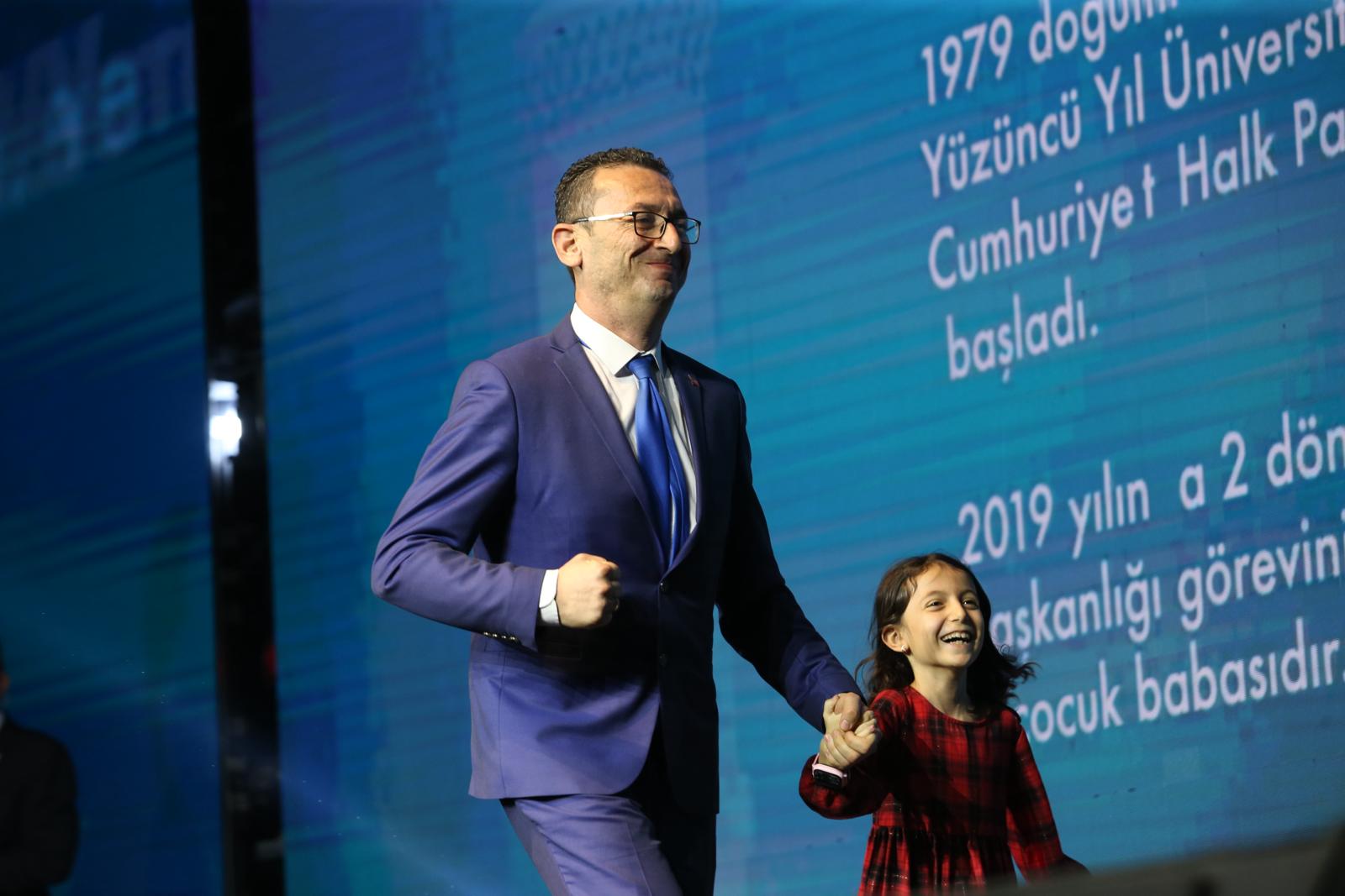 Beydağ Belediye Başkan Adayı Şakir Başaran, adı anons edildiğinde sahneye kızı Şevval ile çıktı. Gülümseyen Şevval, sevimliliği ile törenin yıldızı oldu.
