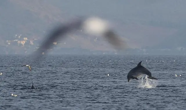 Selçuk'un Pamucak sahilindeki yunuslar görsel şölen oluşturdu.