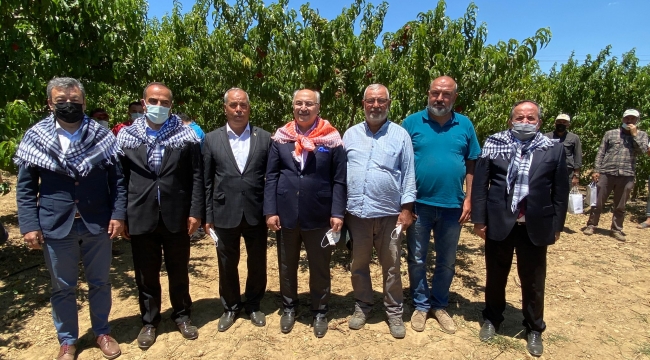 Şeftali üreticilerinin hasat coşkusuna İzmir Valisi Yavuz Selim Köşger ve Ege Yaş Meyve Sebze İhracatçıları Birliği Başkanı Hayrettin Uçak'ta ortak oldu.
