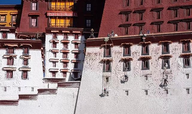 Lhasa'daki Potala Sarayı'nın yıllık yenileme çalışmaları başladı. UNESCO Dünya Mirası.