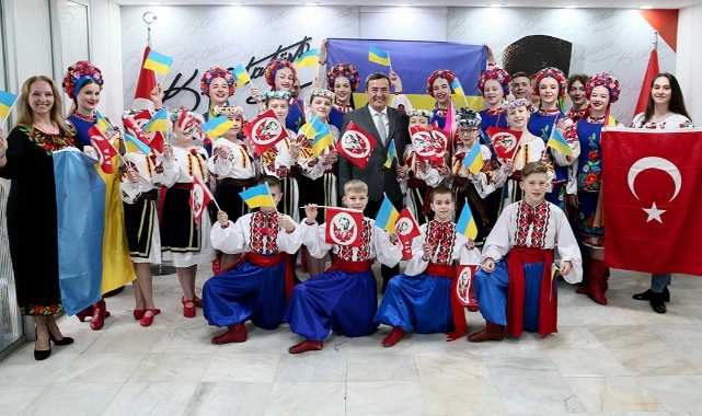 İzmir’e önceki gün gelen 8-16 yaş arasındaki 28 Ukraynalı çocuk, savaştan biraz da olsa uzaklaşmanın mutluluğunu yaşıyor. Yaklaşık 1 hafta boyunca İzmir’i gezecek olan çocuklar, bu kez gösterilerini savaştaki ülkeleri için sunacak.