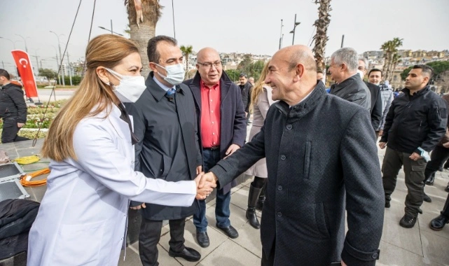 Pandemide büyük bir özveriyle çalışan sağlık emekçileri için İzmir Büyükşehir Belediyesi tarafından yaptırılan Pandemi Kahramanları Anıtı törenle açıldı. Başkan Tunç Soyer, “İzmir Büyükşehir Belediyesi pandeminin başladığı ilk günden bu yana İzmir’in sağlık çalışanlarına dört elle sarılmaya gayret etti. Bu eseri de pandemi sürecindeki her türlü zorluğa göğüs geren sağlık emekçilerine ithaf ediyoruz” dedi.