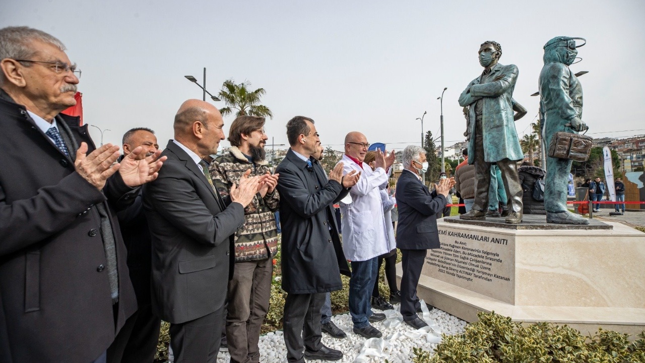 Pandemide büyük bir özveriyle çalışan sağlık emekçileri için İzmir Büyükşehir Belediyesi tarafından yaptırılan Pandemi Kahramanları Anıtı törenle açıldı. Başkan Tunç Soyer, “İzmir Büyükşehir Belediyesi pandeminin başladığı ilk günden bu yana İzmir’in sağlık çalışanlarına dört elle sarılmaya gayret etti. Bu eseri de pandemi sürecindeki her türlü zorluğa göğüs geren sağlık emekçilerine ithaf ediyoruz” dedi.