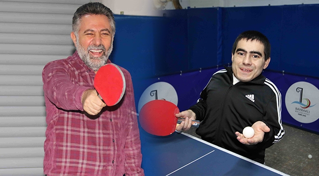 Bayraklı Belediye Başkanı Serdar Sandal, belediyenin masa tenisi kurslarına katılarak kişisel gelişimine büyük katkı sağlayan ve pandemi sürecinde antrenmanlarına evde devam eden mental engelli Murat Özgen Atılmaz'ın meydan okumasına yanıt vererek, yeni yılda sürpriz yaptı. Başkan Sandal, Mustafa Kemal Atatürk Spor Salonu'nda başarılı sporcuyla masa tenisi müsabakasında karşı karşıya geldi, günün şampiyonu Murat oldu.