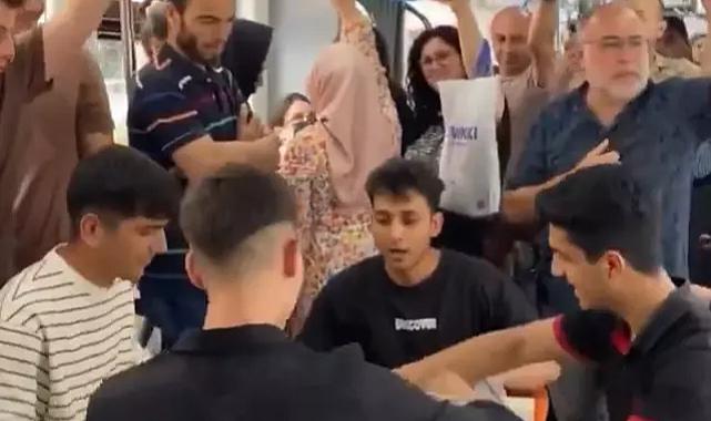 Sosyal medyadan paylaşılan bir görüntüde tramvayda bir grup arkadaş masa kurarak okey oynamaya başladı. Diğer yolcuların şaşkın bakışları arasında 4'lü arkadaş grubu hararetli bir şekilde okey oynamaya devam etti. O anları fark eden yolcular cep telefonuna sarılarak sosyal medyadan paylaşım yapmayı ihmal etmedi.