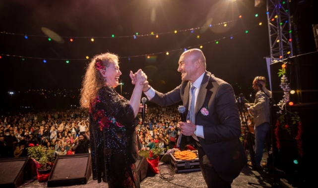 Hıdırellez Şenlikleri’nde eğlence Suzan Kardeş konseri ile devam etti. Binlerce İzmirli, Kültürpark çim alan üzerinde kurulan alanı doldurdu ve şarkılara hep bir ağızdan eşlik etti. Başkan Tunç Soyer ile eşi Neptün Soyer, CHP İzmir Milletvekili Özcan Purçu, İzmir Büyükşehir Belediyesi Genel Sekreter Yardımcısı Ertuğrul Tugay da konseri izledi. İzmir’de İzmirlilerle birlikte olmaktan mutluluk duyduğunu belirten Suzan Kardeş, Başkan Tunç Soyer’i sahnede “en sevdiğim” diyerek karşıladı. Soyer, “Şahanesiniz, güzel İzmirliler bu akşam bütün dilekleriniz gerçek olsun. İyi ki varsınız, iyi ki İzmirliyiz. Suzan Kardeş, bizi çok mutlu ettin, sen kültür taşıyıcısısın. İyi ki geldin ve bizimlesin” dedi. Başkan Soyer ile Suzan Kardeş birlikte İzmir Marşı’nı söyledi, alanda bulunan binlerce yurttaş da marşa eşlik etti.