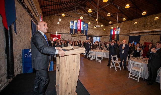İzmir Büyükşehir Belediye Başkanı Tunç Soyer, 5 yıllık görev süresinde birlikte çalıştığı İzmir Büyükşehir Belediyesi yöneticileri ile Tarihi Havagazı Fabrikası’nda düzenlenen kahvaltıda bir araya geldi. Türkiye’de 5 senelik dönemde birçok “ilk” ve “en”i hayata geçiren yönetici kadrosuyla çalıştığını söyleyen Başkan Tunç Soyer, tüm çalışma arkadaşlarına teşekkür etti.