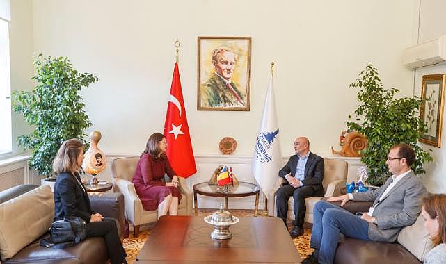 İzmir’de görev süresi sona eren Romanya’nın İzmir Başkonsolosu Mioara Stefan, İzmir Büyükşehir Belediye Başkanı Tunç Soyer’i ziyaret etti.