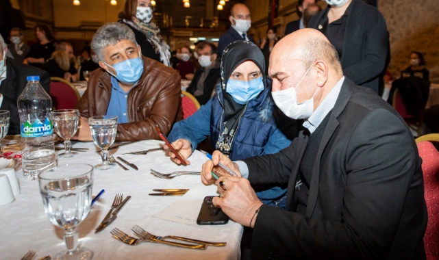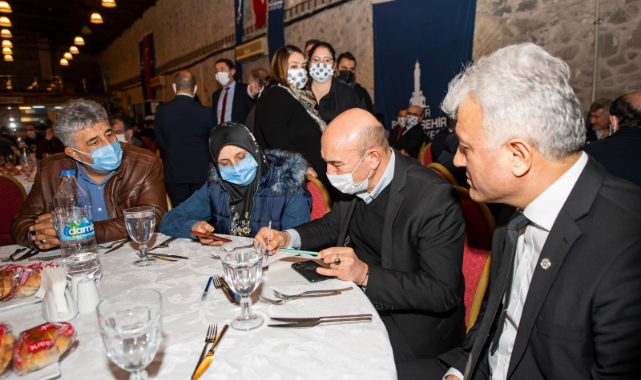 Başkan Tunç Soyer, sırayla tüm misafirlerin masasını ziyaret ederek misafirlerle yakından ilgilendi. Hayatını kaybeden yurttaşları rahmetle anan Soyer, bu yurttaşların yakınlarının yaşadığı sorunlarını, taleplerini dinledi ve tek tek not aldı.