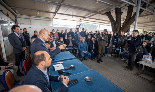 Başkan Soyer, "Süreci siz yaşıyorsunuz, biz de takip ediyoruz. Bildiğiniz gibi bununla ilgili bir dava sürecini de başlatmıştık. Fakat görünen o ki sorun var. Biz, bundan sonra nasıl bir yol izleyelim, bunu beraber konuşup kararlaştıralım diye geldik. Sizlerin fikirlerini, önerilerini almak istiyorum. Biz sonuna kadar yanınızda olacağız, hakkınızı koruyacağız" dedi.