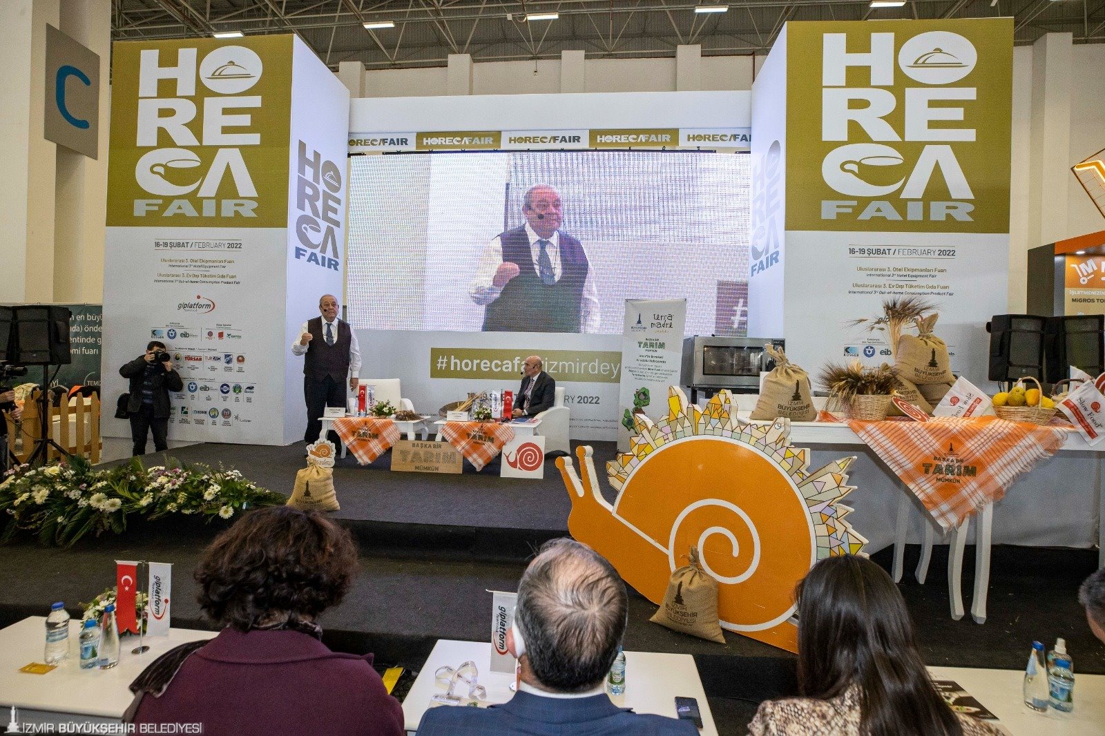 İzmir Büyükşehir Belediye Başkanı Tunç Soyer, HORECA Fair-3. Uluslararası Otel Ekipmanları, Ağırlama Konaklama Teknolojileri ve Ev Dışı Tüketim Fuarı kapsamında yapılan “Cittaslow ve Slow Food ile Nereden Nereye” konulu söyleşiye katıldı. Yazar Nedim Atilla moderatörlüğünde yapılan oturumu İzmir Büyükşehir Belediyesi Genel Sekreter Yardımcısı Ertuğrul Tugay, GL Platform Fuarcılık Genel Müdürü Gül Ceylan, İZFAŞ Genel Müdürü Canan Karaosmanoğlu Alıcı, İzmir Aşçılar Derneği Başkanı Turgay Bucak, İzmir Büyükşehir Belediyesi bürokratları, aşçılar, turizmciler, üreticiler ve birçok katılımcı takip etti.