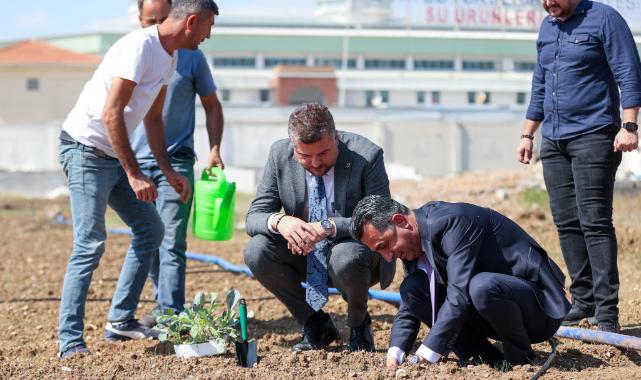 Tarım Okulu’nun ardından, Bucalı hayırsever bir aile tarafından Buca Belediyesi’ne bağışlanan ve yapılacak üretim sonucu elde edilecek ürünlerin ihtiyaç sahiplerine ulaştırılacağı araziye geçen Genel Başkan Yardımcısı Adem ile Başkan Duman, birlikte fide dikimi gerçekleştirdi. Buca Belediye Başkanı Görkem Duman, 66 bin 422 metrekarelik alanı kaplayan bağış arazisinde mevsimine uygun sebze ve meyve tohumları ekimi gerçekleştirdiklerini, buradan elde edilecek ürünlerin Belediye Lokantası aracılığıyla en kısa zamanda Bucalıların sofrasına ulaştırılacağını söyledi.