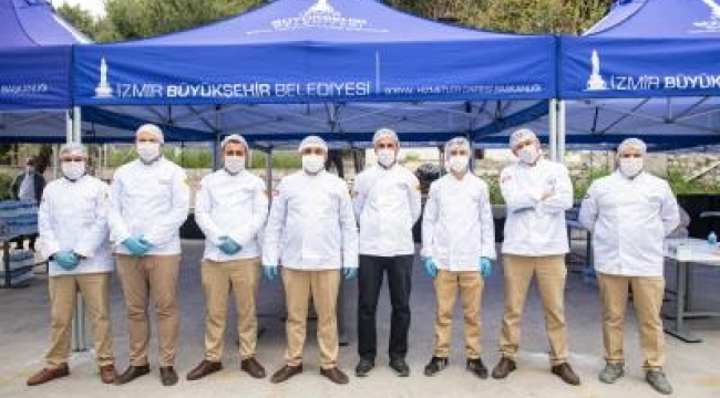 Ramazan ayı boyunca 400 bin kişilik iftar yemeği dağıtmayı planlayan İzmir Büyükşehir Belediyesi, ihtiyaç sahiplerinin iftar yemeği paketleri ve gıda kolilerini kapılarına kadar ulaştırmayı sürdürüyor.