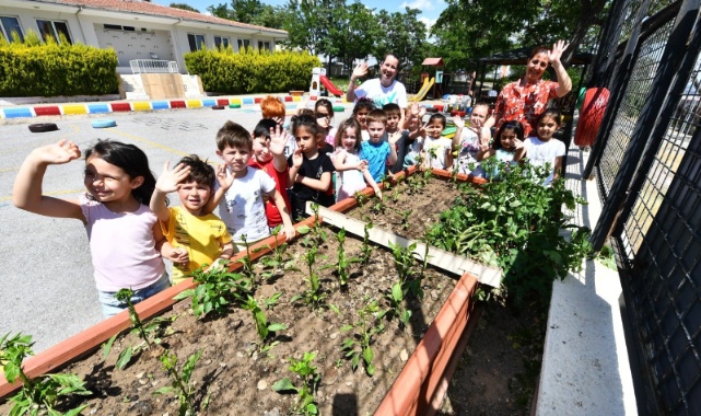 İzmir Büyükşehir Belediyesi İZELMAN Anaokulları'nın EVKA-4 şubesinde kurulan tarım atölyesi ile öğrenciler hem meyve ve sebzelerin gelişimini yakından izliyor hem de üretim sürecine dahil oluyor.