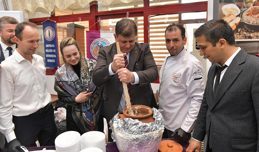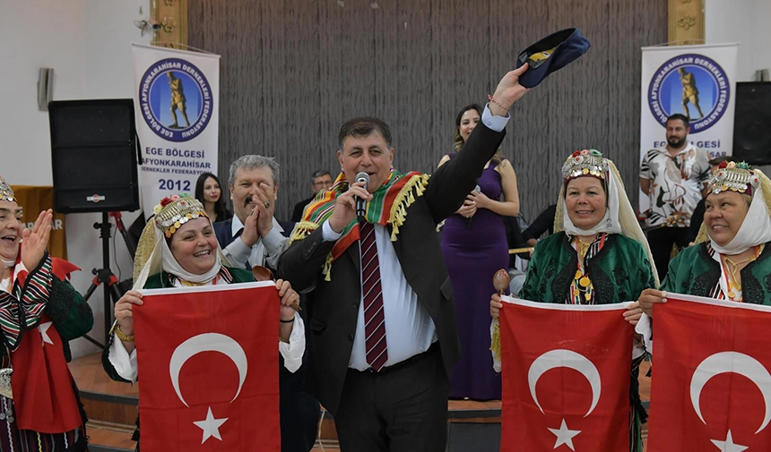 CHP İzmir Büyükşehir Belediye Başkan Adayı Dr. Cemil Tugay, CHP Buca Belediye Başkan Adayı Görkem Duman ile Ege Bölgesi Afyonkarahisar Dernekleri Federasyonu tarafından düzenlenen Kültür Şöleni’ne katılarak keşkek dövme ritüelini gerçekleştirdi. Programda kasket ve Yörük yağlığı takarak yurttaşları selamlayan Başkan Cemil Tugay, Afyonkarahisarlıların gösterdiği dostluk ve kardeşlik için teşekkür etti. Yerel seçimlerde oy verip kendilerini desteklemeleri halinde, en iyi hizmetleri hayata geçirmek için çalışacaklarını vurgulayan Başkan Tugay, “Görev verirseniz, size hizmet etmek bizim için onurdur. Tüm halkımızla birlikte İzmir'e sahip çıkacağız. İyi günde, kötü günde her zaman yanınızda olacağız. Yapacağımız çalışmalarla İzmir'i ve Türkiye'yi çok daha iyi yerlere taşıyacağız. Sizleri çok daha mutlu görmek, çocuklarımıza aydınlık gelecek bırakmak bizim görevimiz” dedi.
