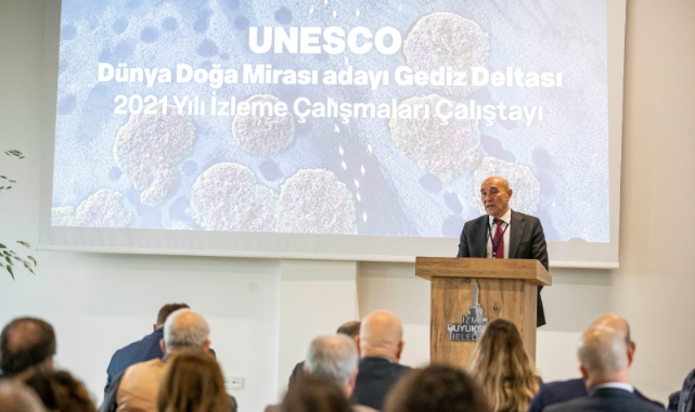 İzmir Büyükşehir Belediye Başkanı Tunç Soyer, UNESCO Dünya Doğa Mirası olma yolunda ilerleyen Gediz Deltası'na ilişkin biyoçeşitlilik araştırma bulgularının aktarıldığı çalıştaya katıldı. Gediz Deltası’na sahip çıkma çağrısı yapan Soyer, “İzmir’de doğan her çocuk, burada doğan flamingolar, pelikanlar ve diğer canlılarla birlikte büyüdüğünü ve bunun İzmir’e özgü bir ayrıcalık olduğunu bilmeli” dedi
