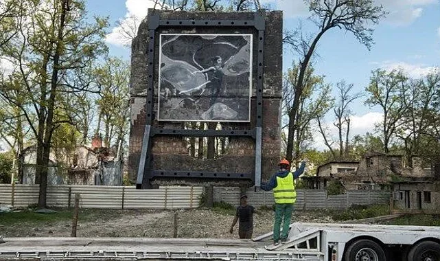 Gizemli sokak sanatçısı Banksy'nin bir cimnastikçiyi tasvir ettiği duvar resmi, Ukrayna'da bombalı saldırıda yıkılan binadan kurtarıldı. Başkent Kiev’in kuzeybatısındaki Irpin kasabasında ağır hasar görmüş çok katlı bir binadan kesilen duvar resmi, pleksi camla korunarak şehrin daha az hasar görmüş başka bir bölgesine taşındı.