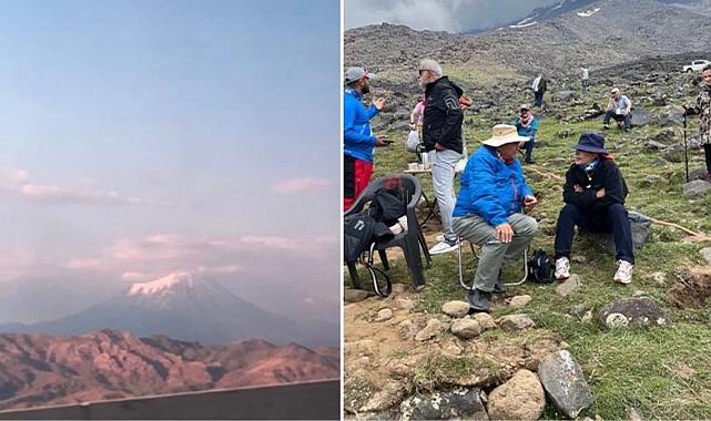 Ercan, yanardağ incelemeleri için 5137 metrelik Türkiye'nin doruğu olan Ağrı dağının 3200 metresine 4×4 jiplerle yola çıktı.