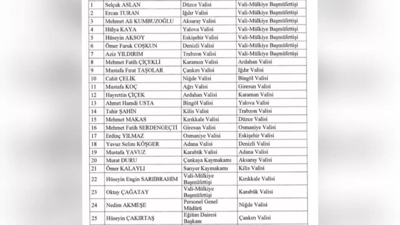 Ayrıca Çankaya Kaymakamı Murat Duru, Aksaray Valiliğine vali olarak atandı; iki kaymakamın daha vali unvanı aldığı bildirildi.