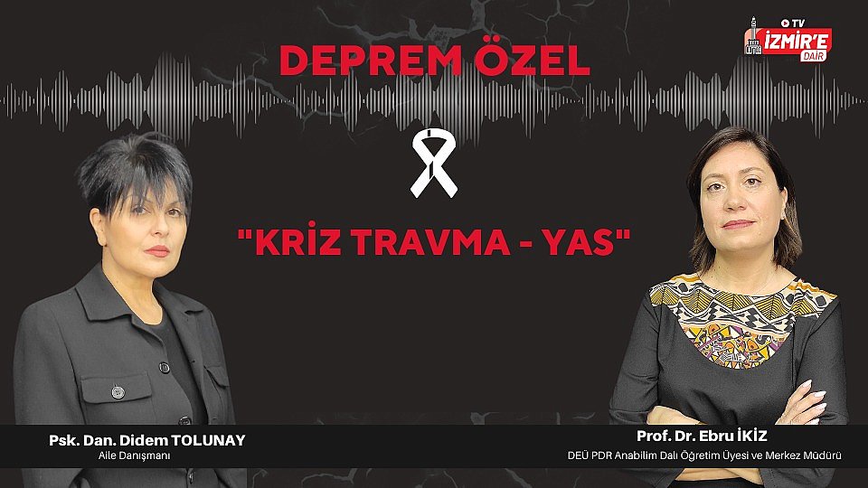 İzmir’e Dair TV’de Deprem özel yayınımızda Psikolojik Danışman Didem Tolunay'ın konuğu DEÜ PDR Anabilim Dalı Öğretim Üyesi ve Merkez Müdürü Prof. Dr. Ebru İKİZ. ‘’Kriz Travma – Yas’’ hakkında yaptığımız yayınımızı Youtube üzerinden izleyebilirsiniz.