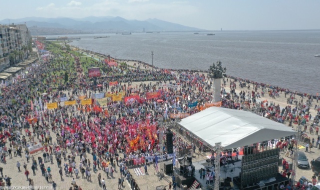 İzmir Büyükşehir Belediye Başkanı Tunç Soyer, 1 Mayıs Emek ve Dayanışma Günü’nü emekçilerle Gündoğdu Meydanı’nda kutladı. “Ya hep beraber ya hiçbirimiz” diyen Başkan Soyer, “Buraya, kavgamızı büyütmeye geldik. Buraya, adalete susayan herkesin sesi olmaya geldik” ifadelerini kullandı. Mitingin ardından Gündoğdu Meydanı’nda İzmir Büyükşehir Belediyesi’nin düzenlediği Edip Akbayram konseri 1 Mayıs coşkusuna coşku kattı.
