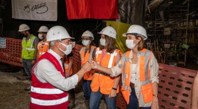 İzmir Büyükşehir Belediye Başkanı Tunç Soyer, yapımı yüzde 77 oranında tamamlanan Narlıdere Metro Şantiyesi'ni ziyaret ederek tünel inşaatında çalışan personelin Ramazan Bayramı'nı kutladı.
