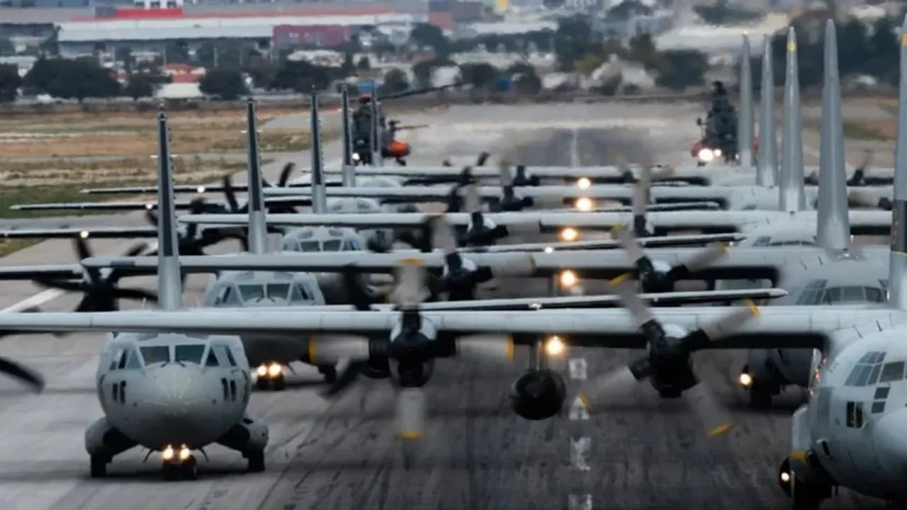 Yunan Hava Kuvvetleri'nin X hesabından yapılan paylaşımda "Günün fotoğrafı" ifadeleriyle ile C-130 nakliye uçaklarının bir fotoğrafları paylaşıldı.
