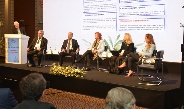 “İklim değişikliği ve sürdürülebilirlik ekseninde Türkiye ekonomisi” başlıklı ikinci oturumda ise Ayvansaray Üniversitesi Rektörü Prof. Dr. Emre Alkin, sürdürülebilir ekonomiyle ilgili öngörülerini paylaştı. Ticaret Bakanlığı İhracat Genel Müdür Yardımcısı Musa Demir, uluslararası iklim değişikliği süreci ve Türkiye’nin iklim politikası, emisyon yoğun sektörlerde ihracat, karbon kaçağı, sınırda karbon düzenlemeleri, AB Yeşil Mutabakatı, zeytinyağında dünya üretimi ve Türkiye’nin zeytinyağı ihracatını değerlendirdi.