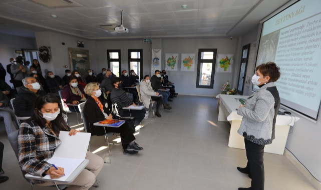 Efes Tarlası Yaşam Köyü Toprak Okulu’nda “Zeytinyağında Kalite Faktörleri ve Tadım Atölyesi” konulu eğitim düzenlendi. Zeytin ve zeytinyağı üreticilerinin katıldığı etkinlikte Tariş Zeytin ve Zeytinyağı Birliği Katile ve ARGE Müdürü Gıda Mühendisi Meltem Zengin, zeytinyağında kalite faktörleri konulu bir sunum yaptı